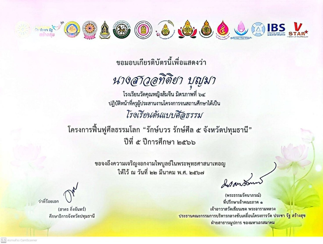 ชื่อผลงาน : รางวัลโรงเรียนต้นแบบศีลธรรม รักษ์บวร รักษ์ศีล ๕